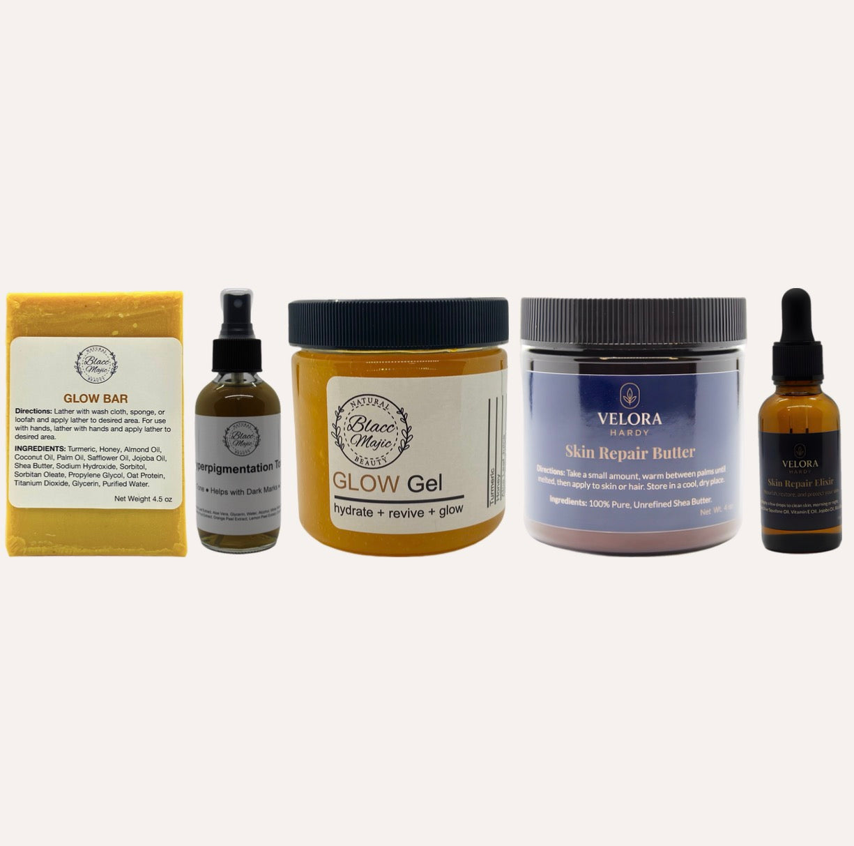 This is our GLOW Kit DELUXE. It consists of our GLOW Bar, GLOW Gel, and Salvation, our Repairing Face Oil. This GLOW Kit SUPREME is easy, simple, and it works!